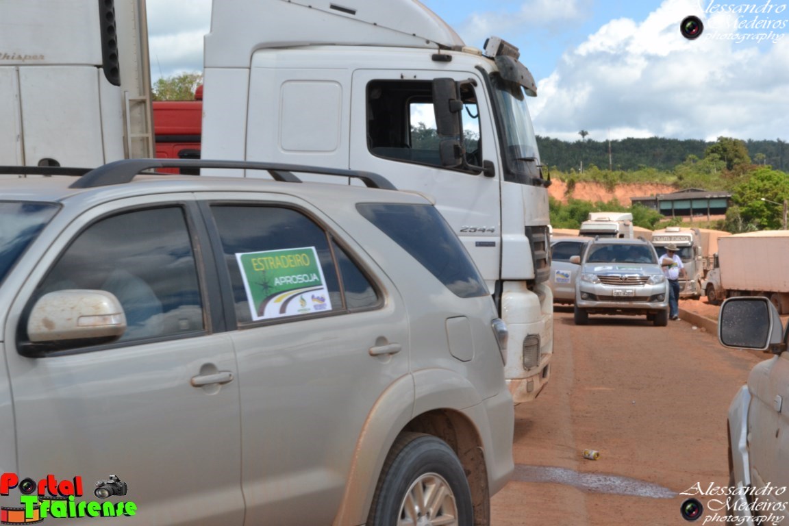 carretas estacionadas ao longo da Estrada e em pátios dos postos de combustíveis. No perímetro urbano, carreteiros fecharam